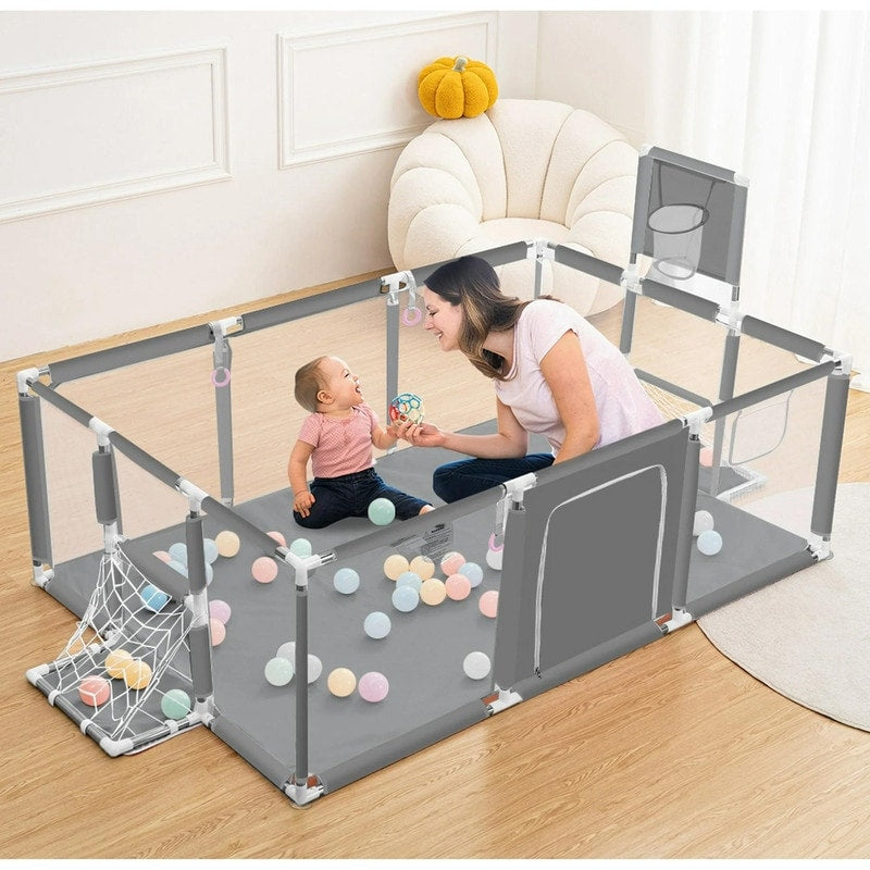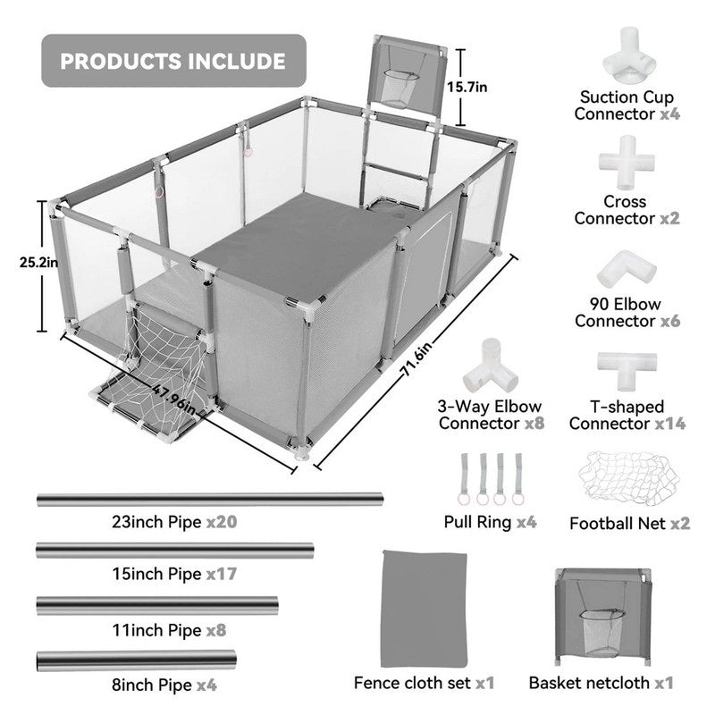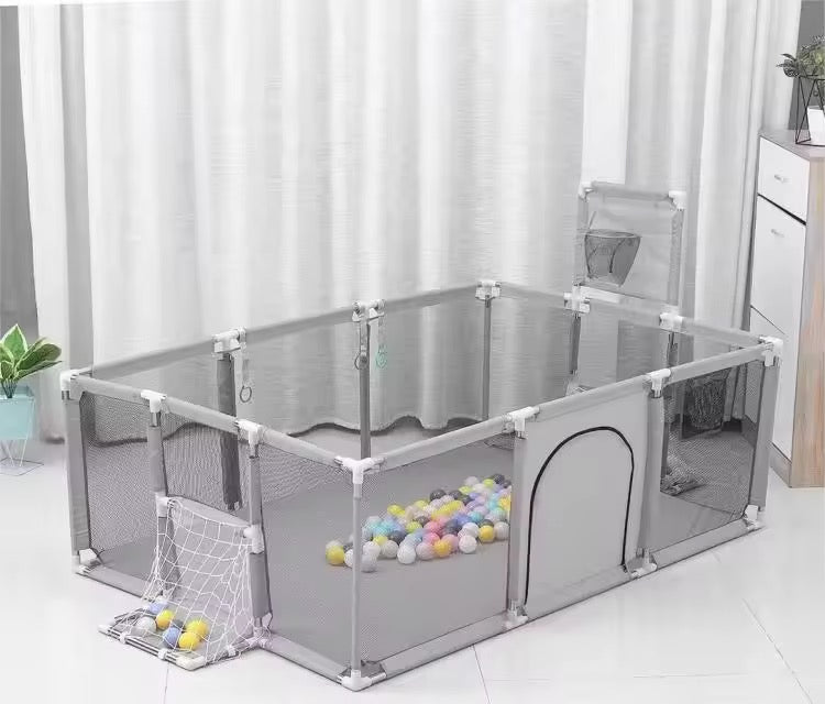Бебешка оградка с кош и врата за гол – 120x180 cm цвят сив