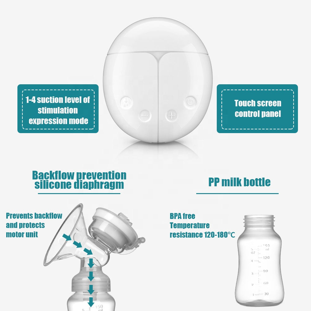 Изработена от термостабилен PP материал, който може да се стерилизира дори при температура до 180°C. Вие и вашето бебе ще сте в безопасност и защитени от бактерии! Лека, с красив дизайн и най-важното, лесно преносима, така че можете да я опаковате в малка чанта (доставя се в опаковката) и да я носите навсякъде със себе си. Можете също така да свържете помпата към всеки USB кабел за зареждане (дори в колата). Силиконовата подложка, която прилепва към гърдите е нежна и създава вакуум по време на изцеждане, а чрез функцията масаж, можете да масажирате гърдите си, което насърчава лактацията и след това да регулирате силата на изцеждане с цели 5 нива! Силиконовата диафрагма в горната част отделя млякото от въздуха, предотвратява замърсяването на трахеята (тръбата) и предпазва вас и вашето дете от бактерии. Освен това е снабден с отвор за въздух, така че предотвратява и връщането на мляко, т.е. изтичане!