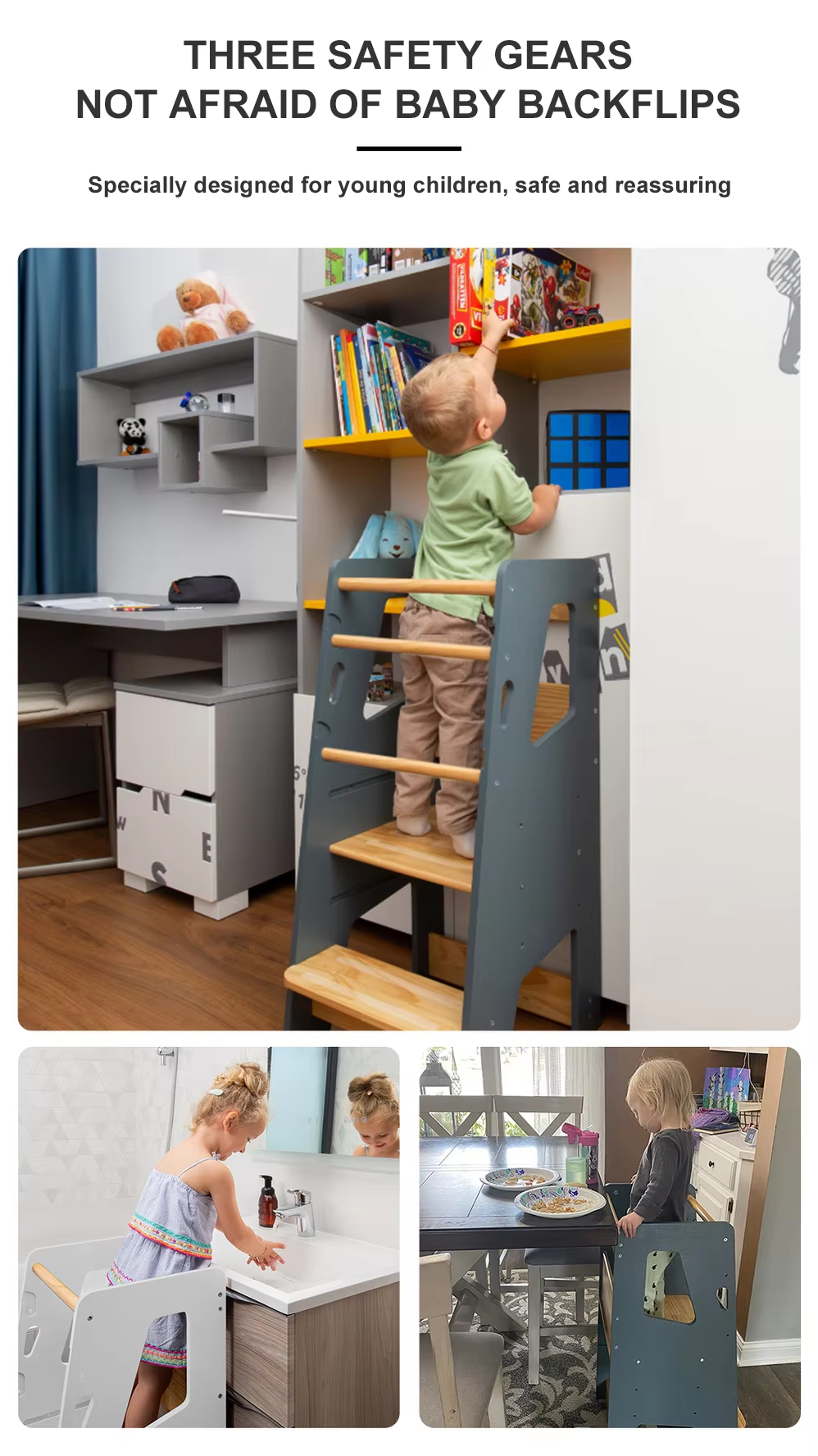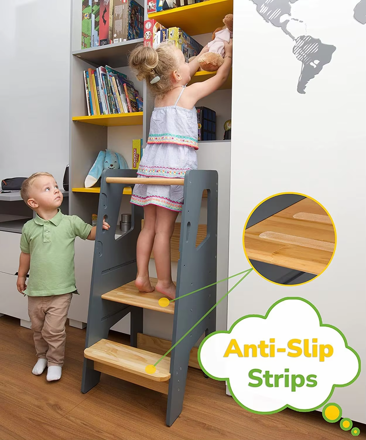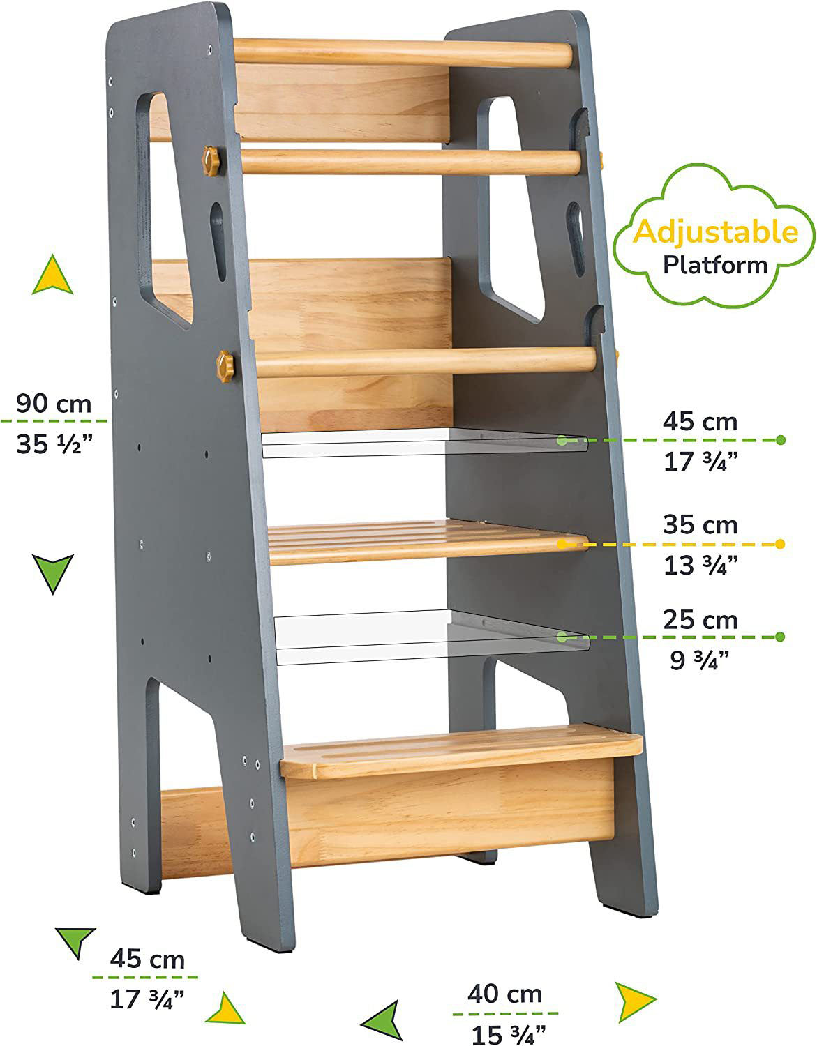 Регулируема платформа: Настрой височината според ръста на твоето дете – 25, 35 или 45 см.