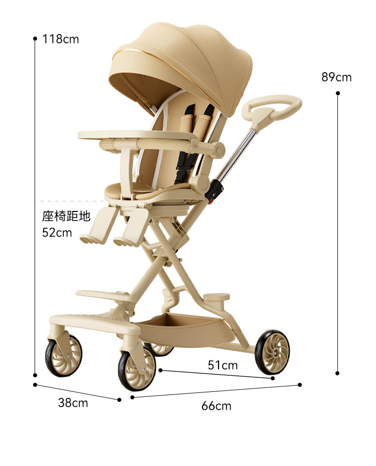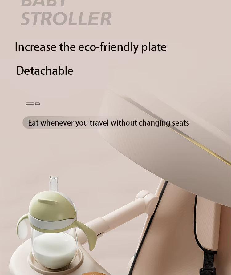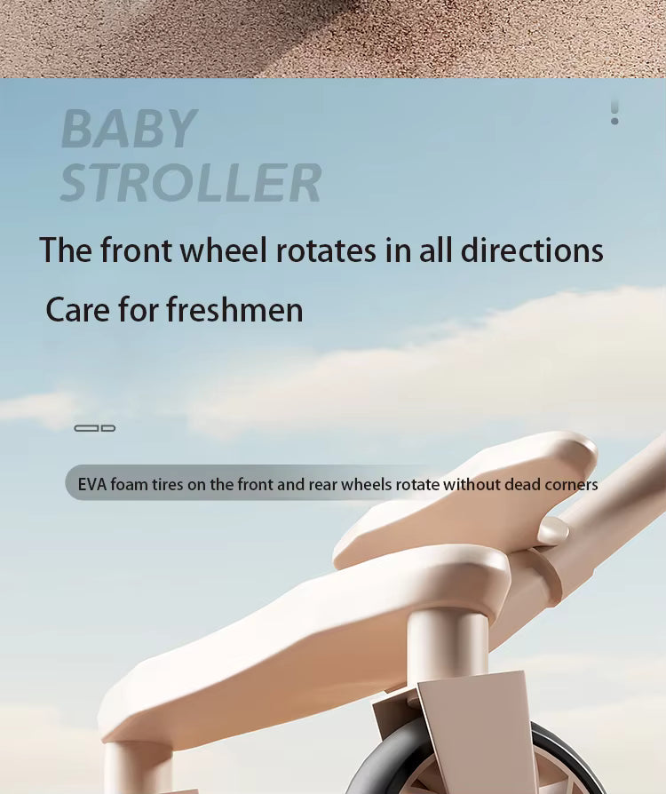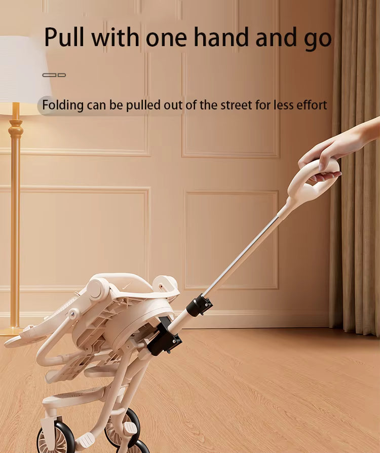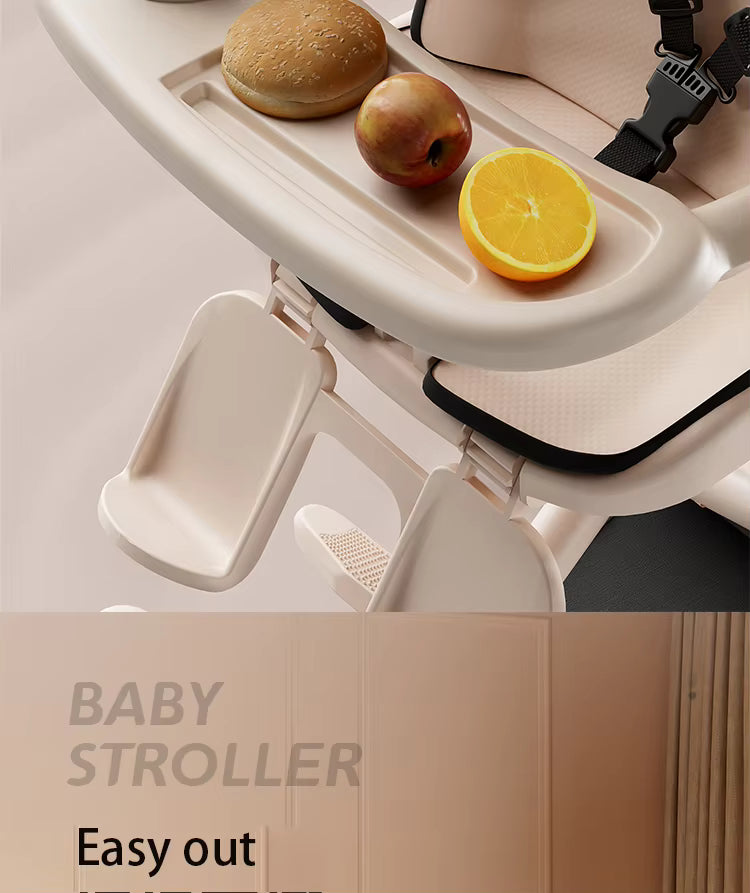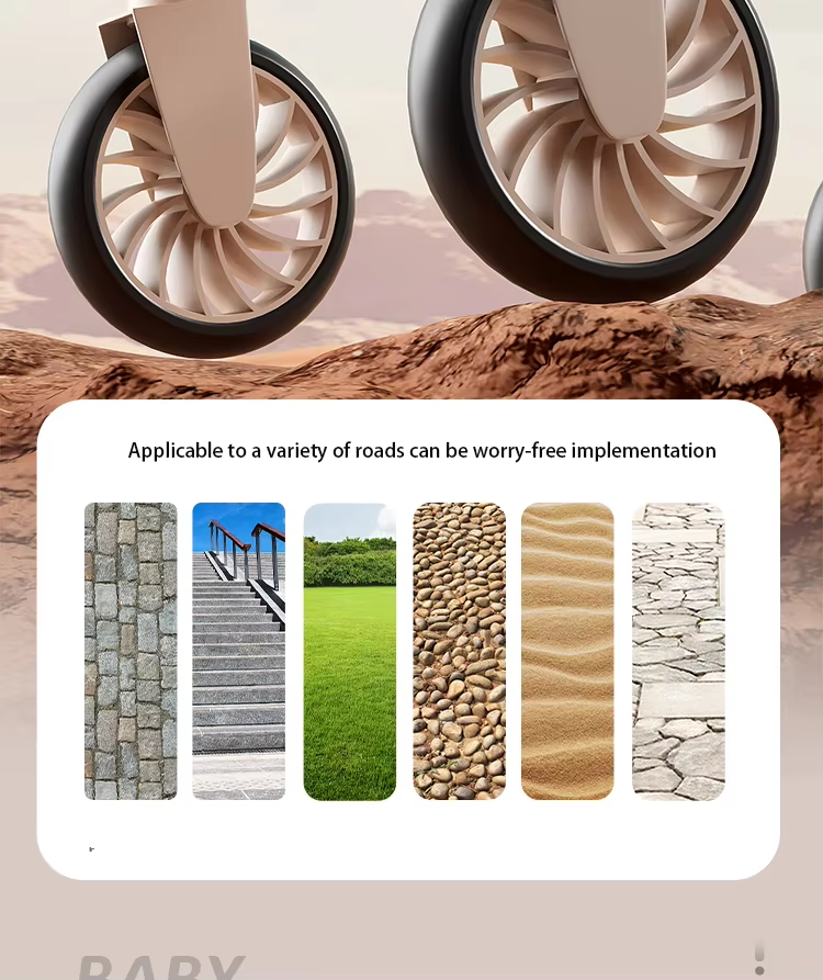360° въртящи се колела, амортисьори, спирачка с едно натискане и 5-точков колан за сигурност. Антиподхлъзващ дизайн за допълнителна стабилност, дори при неравен терен.